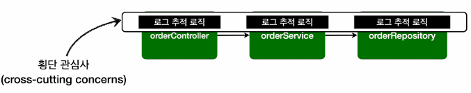 Aspect는 번역하면 관점이라는 의미인데, 이름 그대로 어플리케이션을 바라보는 관점을 횡단 관심사 관점(cross-cutting concerns)으로 달리 보는 것입니다.