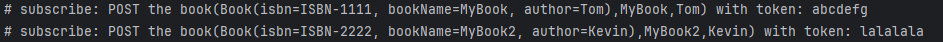 String response = "POST the book(" + tuple.getT1() + "," + tuple.getT1().getBookName()