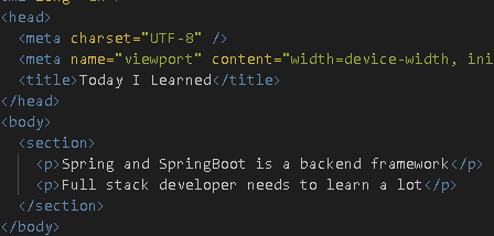 - 텍스트, 이미지, 링크, 스크립트, 스타일 등 웹 페이지의 모든 요소를 여기에 포함할 수 있습니다.