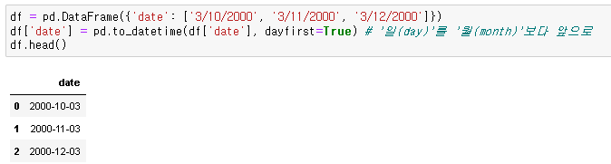 to_datetime 함수에 dayfirst = True 를 넣으면, day(일)가 month(월)보다 앞으로 나와서 date 형으로 변환됩니다.