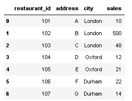 아래와 같은 데이터프레임으로 실습을 진행해 보겠습니다.