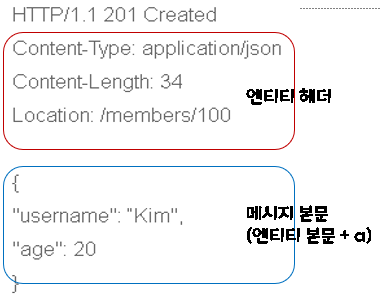 - 메시지 본문(message body)은 엔티티 본문(entity body)을 전달하는 데 사용