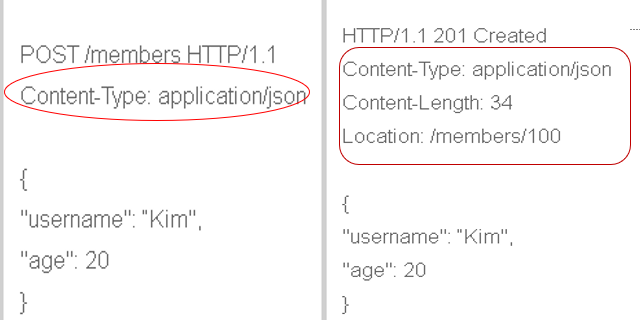 - 메시지 본문(message body)을 통해 표현 데이터 전달