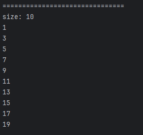 위 코드에서 기대하는 바는, ExecutorService에서 만든 3개의 쓰레드가 협력하여 20개의 데이터를 출력 후, odds 배열에 홀수인 데이터만 저장하도록 하여서, 마지막에는 odds 배열에서 홀수가 출력되는 것입니다. 하지만, 위와 같이 작성하면 결과는 아래와 같이 엉뚱하게 나옵니다.