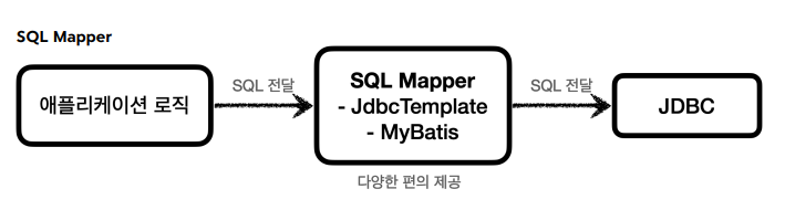 JDBC를 직접 사용하는 것보다는 JDBC를 편리하게 사용하는 다양한 기술이 존재하는데, 대표적으로 SQL Mapper와 ORM 기술이 있습니다.