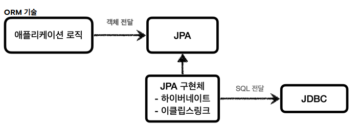 위 그림에서 볼 수 있듯이, SQL Mapper는 개발자가 SQL을 작성하여 Mapper에 전달하고, Mapper가 JDBC에게 전달하는 방식입니다. ORM 기술은 객체를 관계형 데이터베이스 테이블과 매핑해주는 기술입니다. SQL Mapper와 달리 개발자가 반복적인 SQL을 직접 작성하지 않고 ORM 기술이 직접 SQL을 동적으로 생성하여 실행해 줍니다.