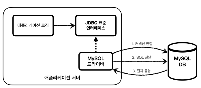 - 애플리케이션 로직에서 DriverManager.getConnection() 호출로 Connection 요청