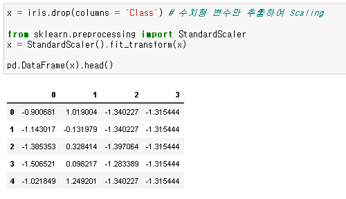 먼저 PCA를 사용하기 위해서는 일반적으로 데이터를 스케일링 합니다. 왜냐하면, 변수 간의 스케일의 차이가 주성분 선정에 영향을 줄 수도 있기 때문입니다.