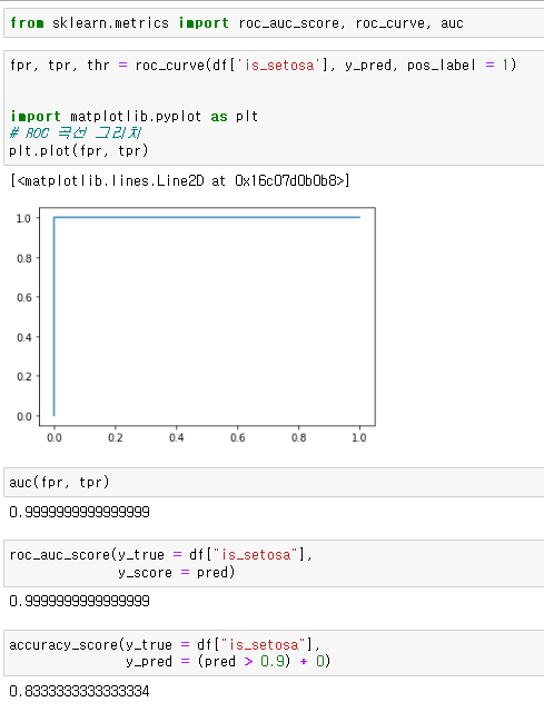 또한 roc_auc_score을 이용해서도 auc 점수를 구할 수 있습니다.