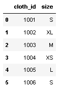 'cloth_id': [1001, 1002, 1003, 1004, 1005, 1006],