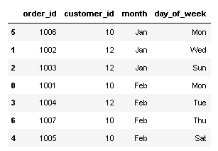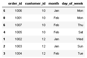 df2.sort_values(['customer_id', 'month', 'day_of_week'])