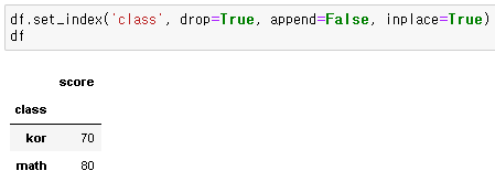 df = pd.DataFrame(data=[['kor', 70], ['math', 80]], columns=['class', 'score'])