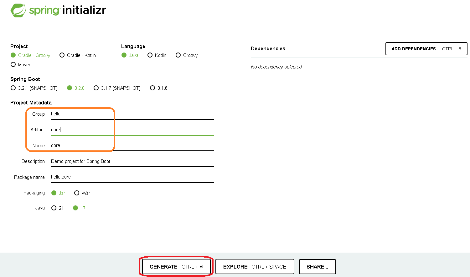 저는 아래와 같이 구성한 후, Generate 버튼을 눌러 프로젝트를 생성하였습니다.