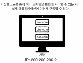 - 하나의 서버가 여러 도메인을 처리해야 할 경우 = 하나의 IP 주소에 여러 도메인이 적용되어 있을 경우
