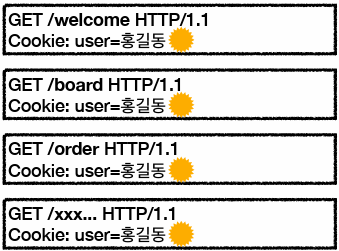 - 이후 모든 요청에 쿠키 정보 자동 포함