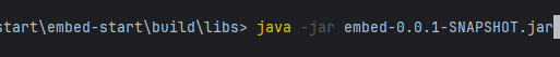 위 프로젝트를 아래 명령어를 통해서 실행하면 jar가 빌드되면서 jar 파일(embed-0.0.1-SNAPSHOT-jar)이 만들어지는 것을 확인할 수 있습니다.